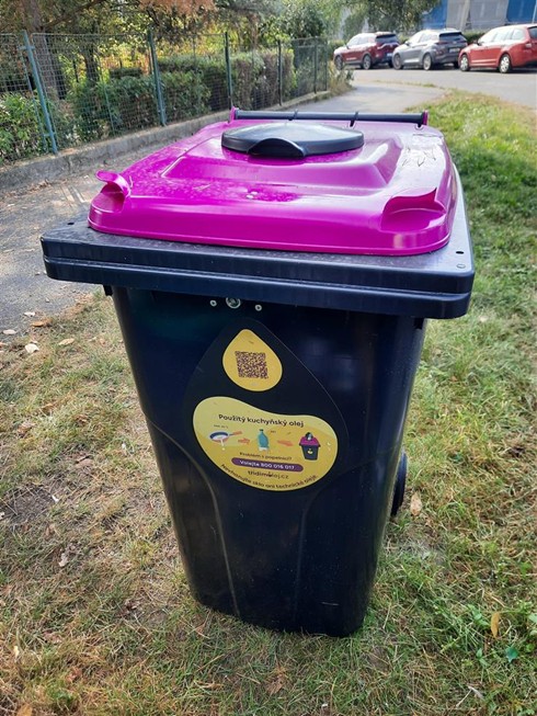 Použitý olej či rozpuštěný tuk nevhazujte do dřezu – může poškodit odpady i kanalizaci. Místo toho jej pomocí nálevky sbírejte do PET láhve nebo jiné uzavíratelné plastové nádoby. Po jejím naplnění ji vhoďte do černofialové nádoby na použitý kuchyňský olej či tuk, kterou najdete ve svém okolí.